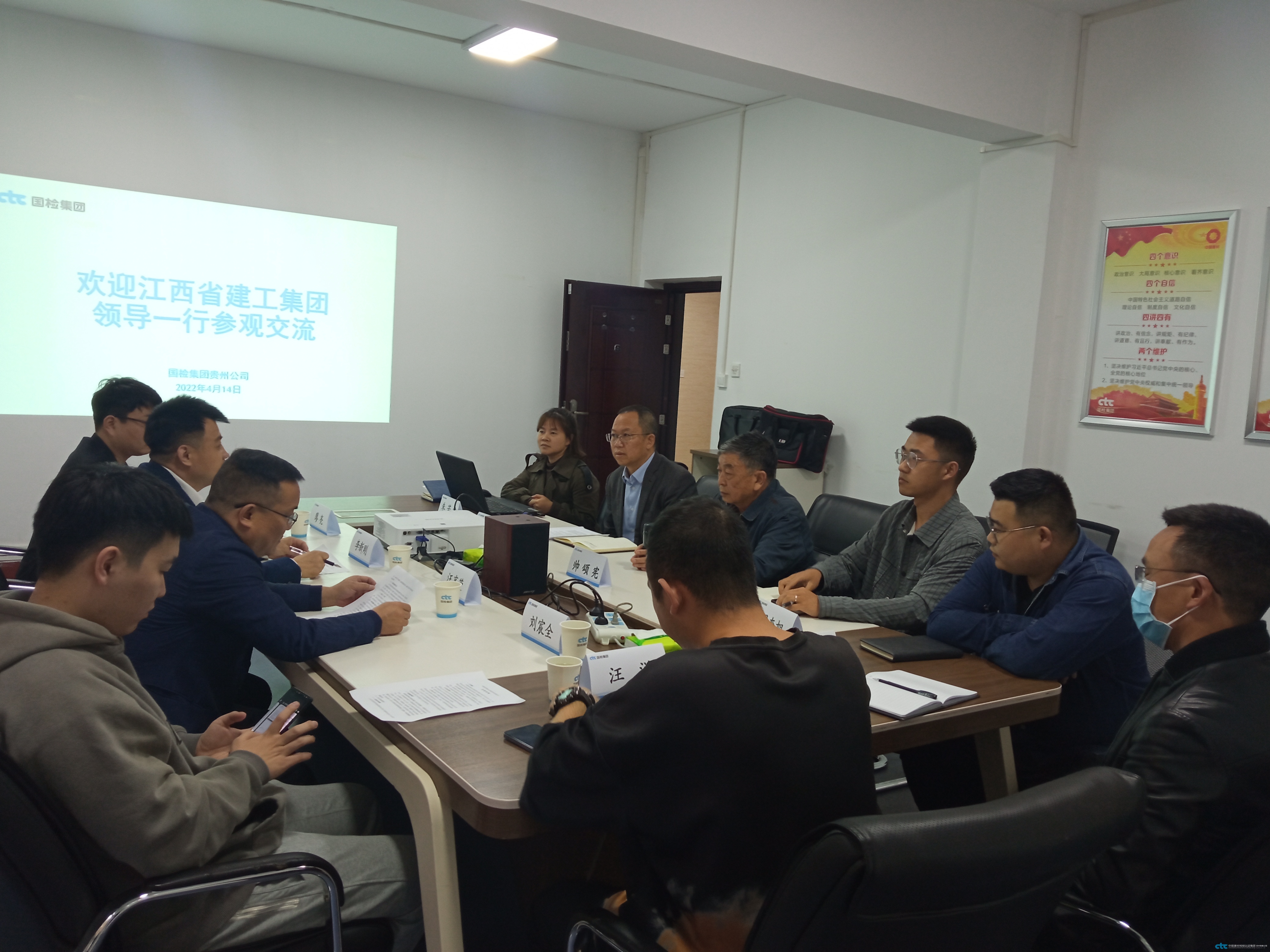 2022年4月14日,江西省建工集團總工程師李新剛帶隊來我司考察交流,貴州公司副總經(jīng)理李繼超代表公司對李新剛總工程師一行的到訪表示熱烈歡迎,雙方就高性能混凝土技術(shù)和信息化建設(shè)、數(shù)字化建設(shè)進行了深入交流與探討。貴州公司副總經(jīng)理李繼超、技術(shù)總顧問帥頌憲、總經(jīng)理助理朱若君等參加交流活動。