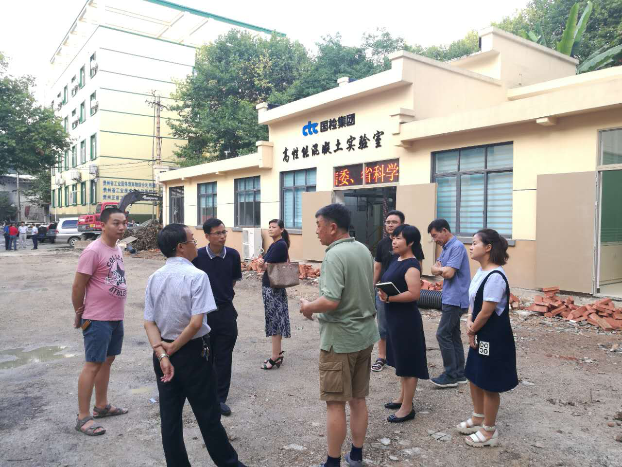 公司常務副總經理張桂紅、技術總顧問帥頌憲陪同各位領導先后參觀了化學分析實驗室和高性能混凝土實驗室,各位領導對貴州公司的儀器設備配置、技術人員團隊及各項工作開展情況給予了肯定,尤其是依托貴州科學院支持建設而成的具有完全自主知識產權的國內先進的機制砂高性能混凝土試驗、檢測平臺,獲得了各位領導的一致認同與肯定。